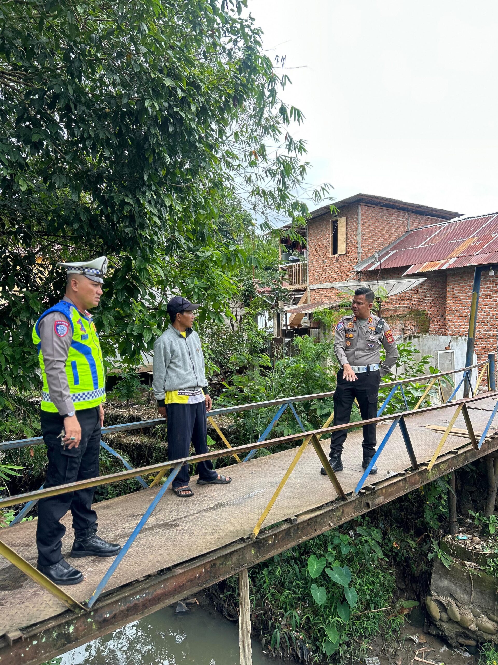 Selain melakukan pemantauan visual terhadap kondisi jalur dan debit air, Kasatlantas juga menyempatkan diri untuk berinteraksi langsung dengan warga yang tinggal di sekitar lokasi rawan. Imbauan keselamatan disampaikan secara langsung: