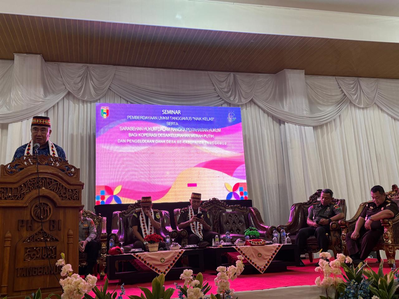 Sebagai langkah konkret “UKM naik kelas”, Kajati Lampung dan Bupati Tanggamus menyerahkan bantuan perlengkapan usaha kepada 16 UKM, serta 20 sertifikat halal bagi UKM Sahabat Adhyaksa mitra binaan Kejari Tanggamus.(Rsw)