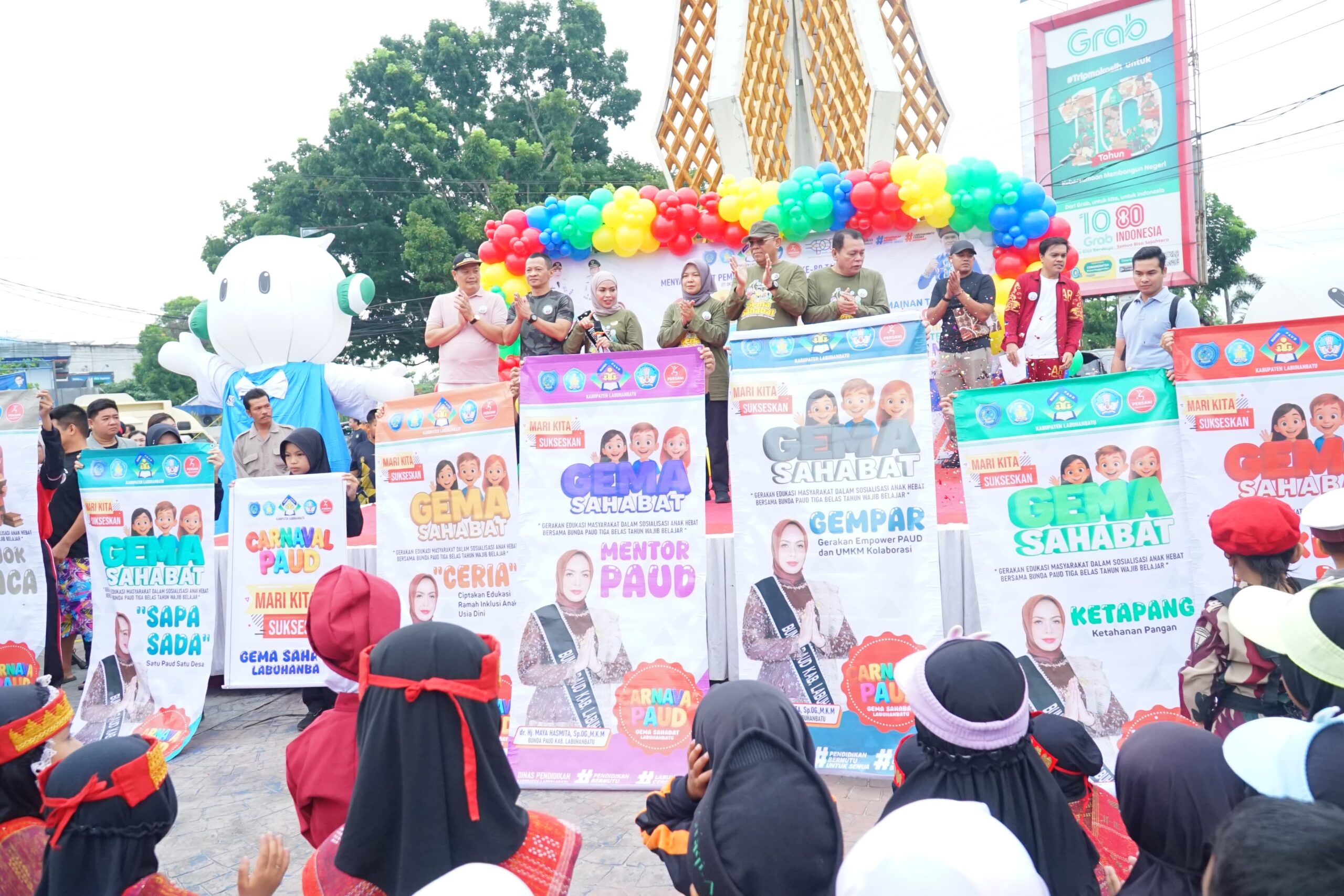 Kemeriahan lebih terlihat ketika Bunda PAUD Labuhanbatu turut meramaikan kegiatan tersebut berdampingan dengan para anak-anak dan masyarakat sekitar.