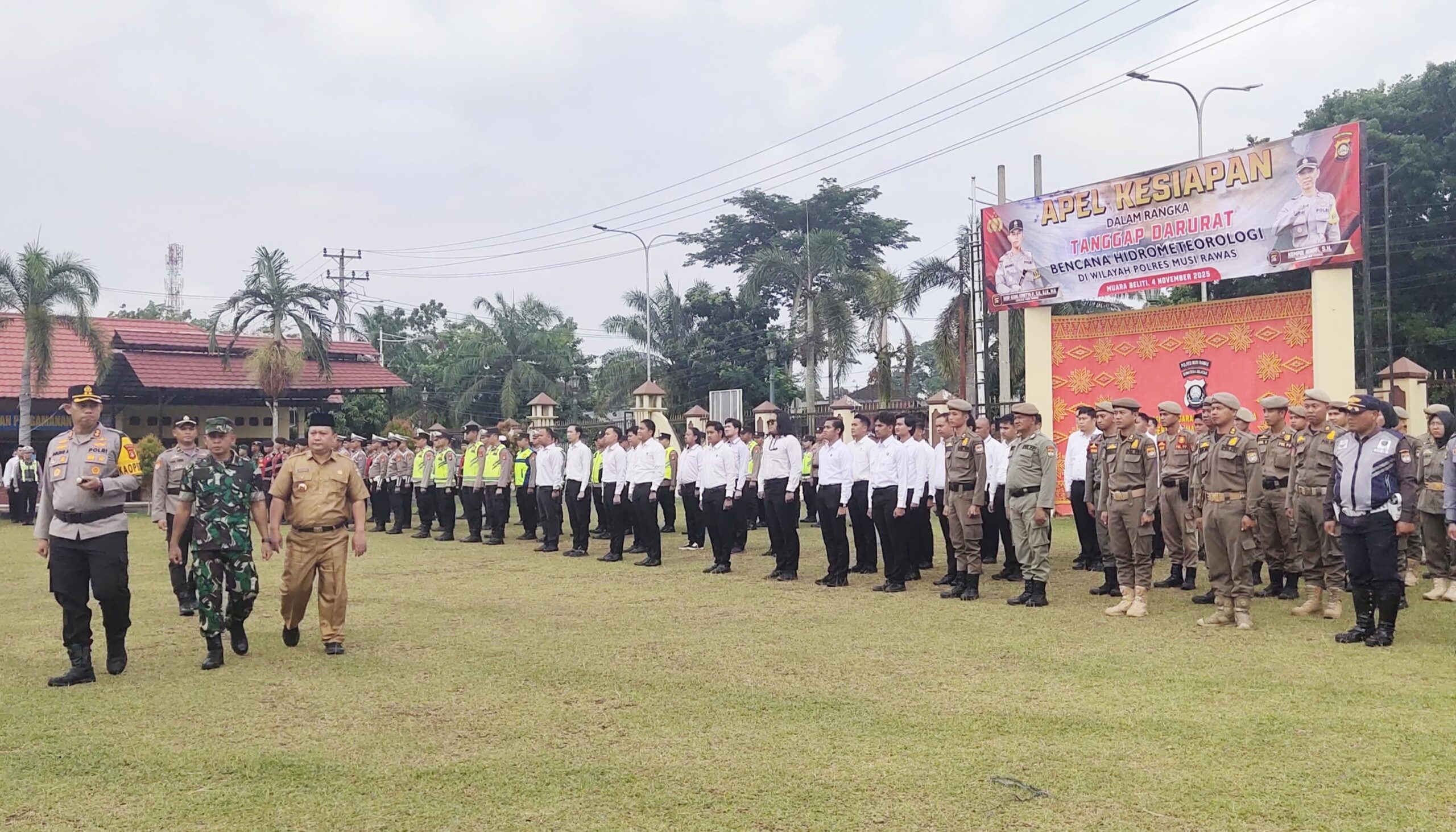 Dan, apel Kesiapan Dalam Rangka Tanggap Darurat Bencana Hidrometeorologi, dihadiri serta melibatkan juga beberapa pihak stakeholder seperti TNI, kemudian BPBD, Sat Pol PP Damkar, Dinkes, Damkar dan Dinsos, serta digelar di Halaman Apel Mapolres Musi Rawas, Selasa (4/11/2025).