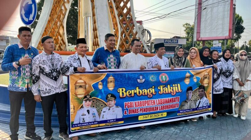 Labuhanbatu, Lensapendidikan.com-Dalam semangat berbagi di bulan suci Ramadhan, Dinas Pendidikan bersama Persatuan Guru Republik Indonesia (PGRI) Kabupaten Labuhanbatu menggelar kegiatan sosial dengan membagikan sebanyak 1.000 paket takjil kepada masyarakat, di Simpang Enam Rantauprapat (12/03/2026)