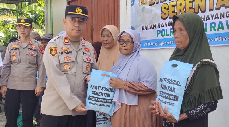 Selain bedah rumah, Polres Musi Rawas juga menyalurkan bantuan sosial berupa paket sembako kepada masyarakat kurang mampu di wilayah Kecamatan Megang Sakti, sebagai bagian dari rangkaian kegiatan Hari Bhayangkara ke-80.