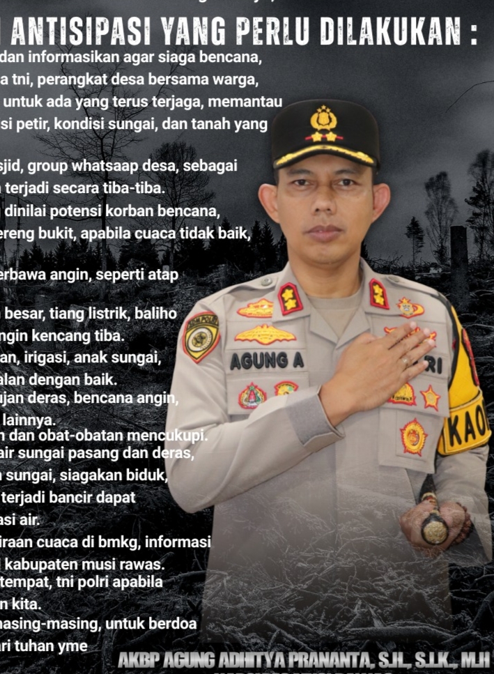 Maka dari itu, Kapolres Musi Rawas, AKBP Agung Adhitya Prananta, SH, SIK, MH, menghimbau seluruh elemen masyarakat beserta stakeholder terkait, untuk meningkatkan kewaspadaan dan mengambil langkah-langkah antisipatif demi keselamatan bersama.