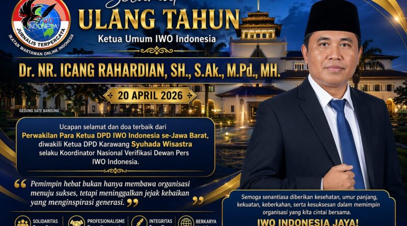 Momen tersebut terjadi dalam rangka peringatan hari ulang tahun Ketua Umum IWO Indonesia, Dr. NR. Icang Rahardian, SH., S.Ak., M.Pd., MH, yang jatuh pada 20 April 2026.