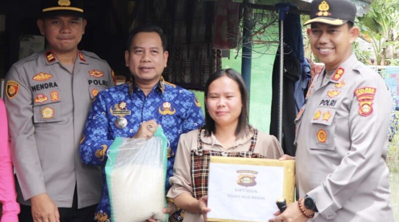 Peduli Korban Banjir di Desa Darma Sakti, Kapolres Musi Rawas Tinjau dan Turun Langsung Salurkan Sembako