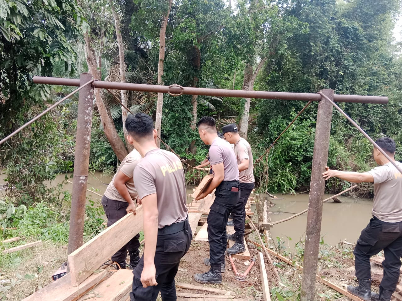 Peduli Masa Depan Anak dan Masyarakat, Polres Musi Rawas Perbaiki Jembatan Gantung Penghubung Desa Bangun Rejo–Sukowarno