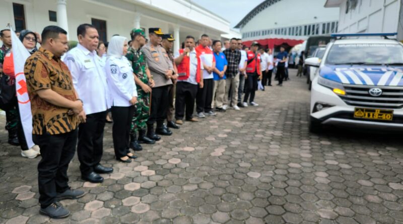 Pelepasan bantuan disaksikan Sekdakab Labuhanbatu, Asisten, Kepala OPD, Kabag, Kaban, PWI, dan PMI Labuhanbatu. (Azi)