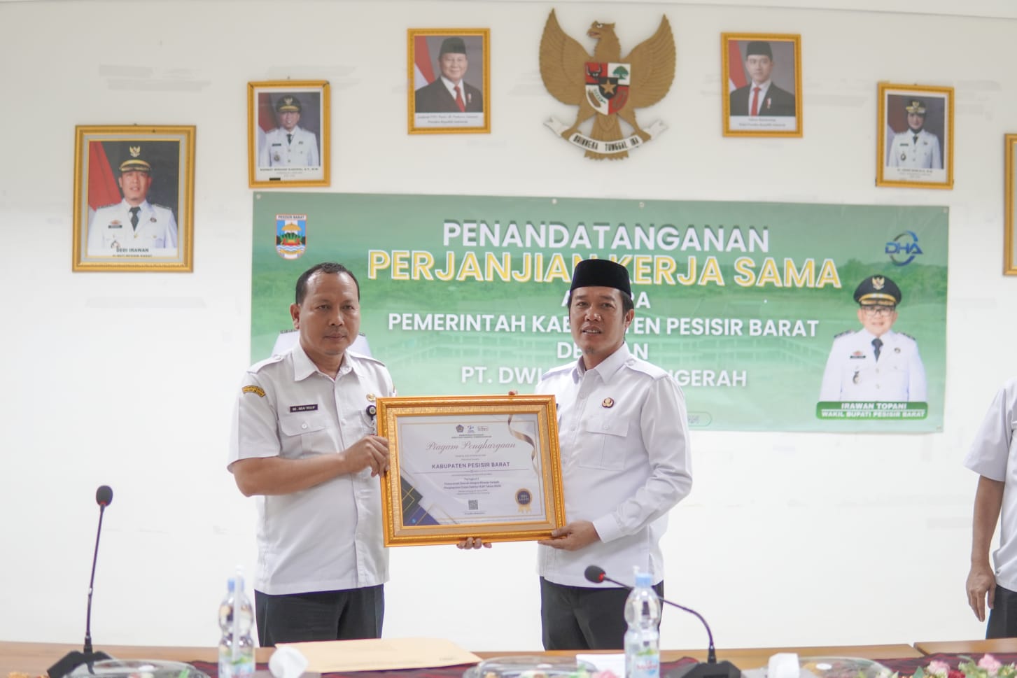 Pemerintah Kabupaten Pesisir Barat resmi menandatangani Perjanjian Kerja Sama (PKS) pengelolaan kawasan usaha agroindustri terpadu bersama PT. Dwi Hasta Anugerah, bertempat di ruang payung agung lantai 4, komplek perkantoran Pemda kabupaten pesisir Barat,