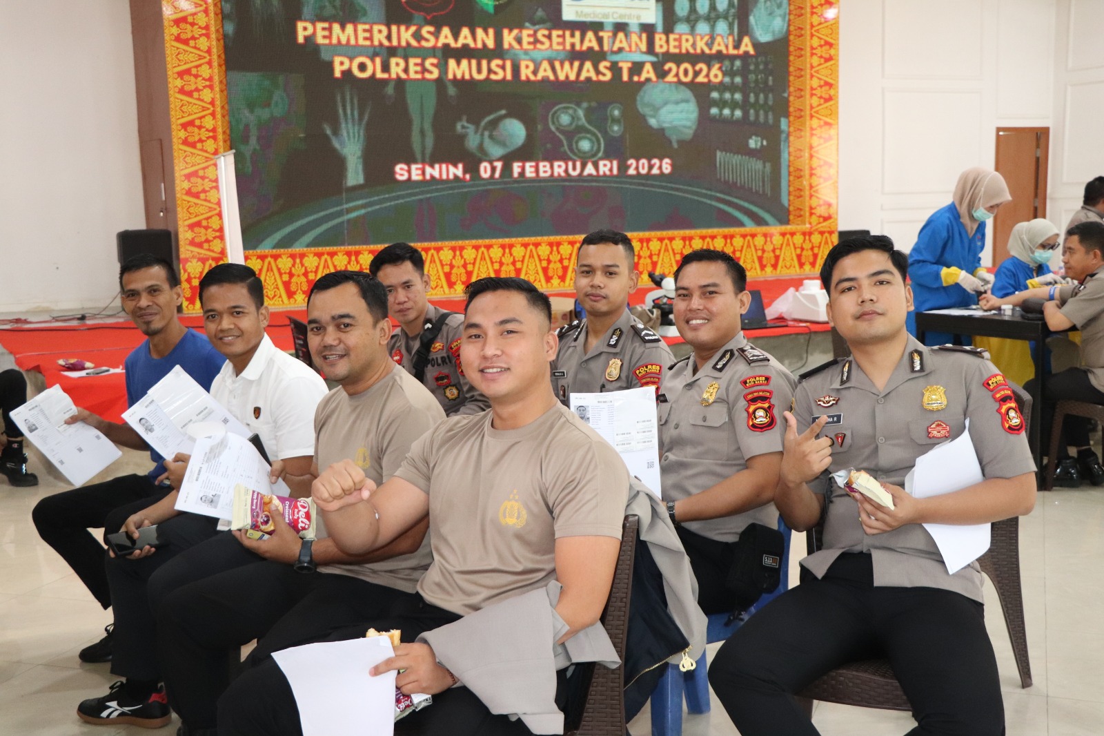lensapendidikan.com Musi Rawas — Dalam rangka menjaga kesehatan serta kesiapsiagaan personel, Polres Musi Rawas melaksanakan kegiatan Pemeriksaan Kesehatan Berkala (Rikkesla) Polda Sumatera Selatan Tahun 2026, yang dipusatkan di Gedung Atmani Wedhana Mapolres Musi Rawas, Rabu (4/2/2026).