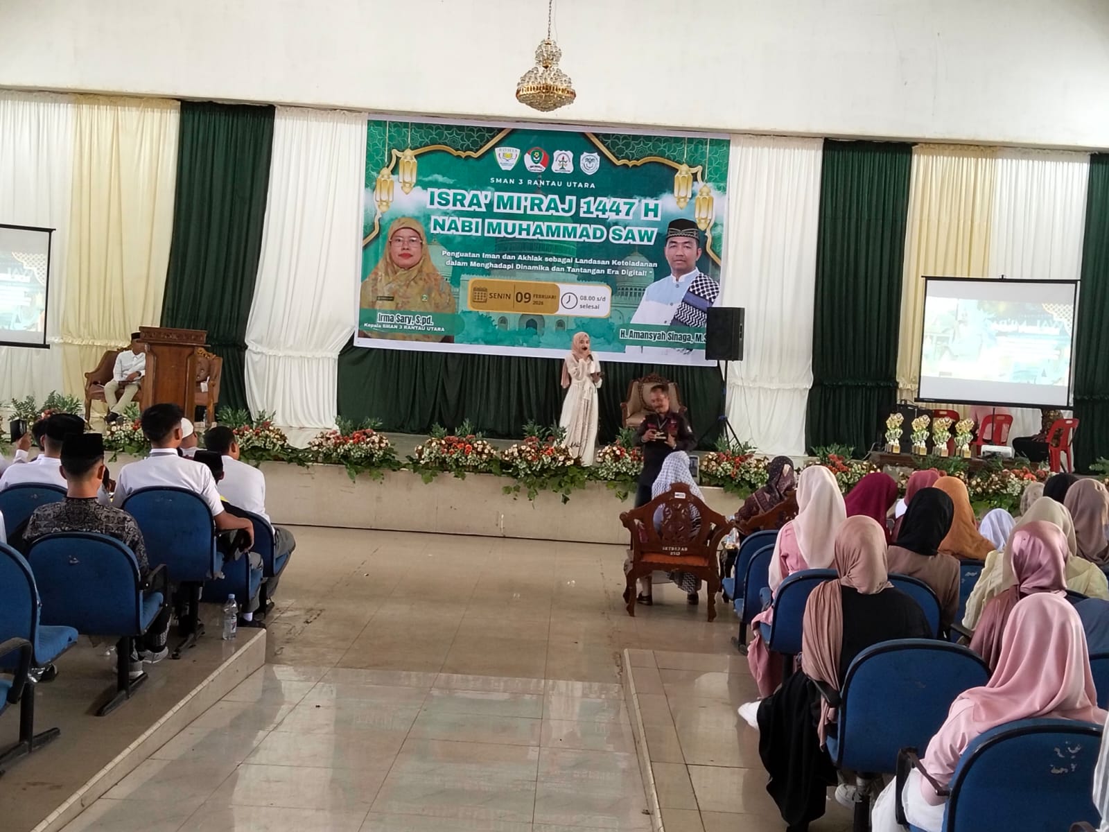 Labuhanbatu, Lensapendidikan.com-SMA Negeri 3 Rantau Utara menggelar peringatan Isra Mi’raj Nabi Muhammad SAW 1447 Hijriah dengan penuh khidmat, Senin (9/2/2026), di Gedung Asrama Haji Rantauprapat. Mengusung tema “Penguatan Iman dan Akhlak sebagai Landasan Keteladanan dalam Menghadapi Dinamika Era Digital”, kegiatan ini menjadi momentum refleksi spiritual bagi seluruh warga sekolah.